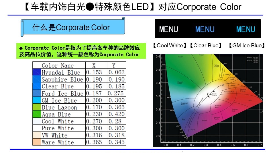 配合汽車內室燈光的需要,提供全色系、全尺寸的LED解決方案,應用于影音娛樂終端、空調控制器、儀表顯示、各類功能型按鍵開關、情景氛圍燈等